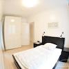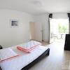 Schlafzimmer mit Doppelbett (140 cm) und Zugang zur sonnigen Loggia mit Suedrichtung.