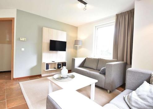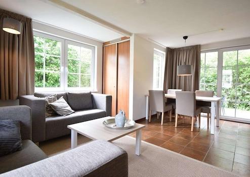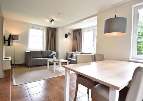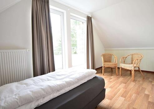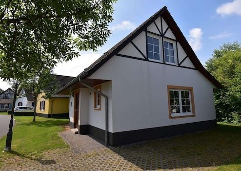 Gepflegtes 4-Personen-Haus. Liegt schön und geschützt im Park. Wohnzimmer mit offener Küche. Schlafzimmer im Erdgeschoss mit eigenem Bad. Separate Toilette auf dem Flur. Im Obergeschoss 2 Schlafzimmer mit 1 Boxspringbett. Badezimmer mit Badewanne auf der Etage und eine separate Toilette.