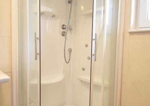 Das erste Badezimmer ist en-suite mit dem ersten Schlafzimmer und befindet sich daher im Erdgeschoss. In diesem Bad finden Sie ein wunderbares Dampfbad, in dem Sie sich im Urlaub entspannen können. Außerdem finden Sie ein Waschbecken.