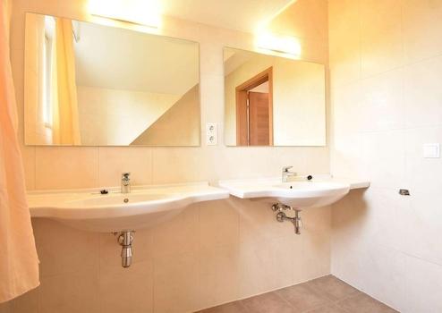 Das Badezimmer 2 befindet sich im Obergeschoss. Haben Sie keine Lust, ins Dampfbad zu gehen, dann gibt es in diesem Bad eine Badewanne. 2 Waschbecken sind vorhanden, so dass schön Platz ist.