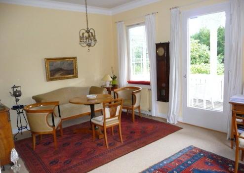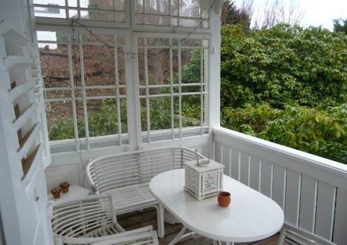 - Die Veranda ist annähernd quadratisch ausgebildet, besitzt eine seitliche stilgerechte Verglasung und einen direkten Zugang zum Gartengrundstück
