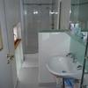 - Modern ausgestattetes Tageslicht-Duschbad mit großer Dusche und Glasabschluss, Hänge-WC mit Unterputzspülung und Waschtisch.