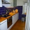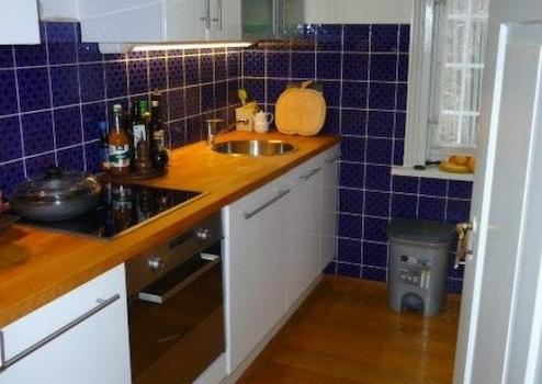 - Komplette Einbauküche mit elektrischen Geräten und großem Fliesenspiegel