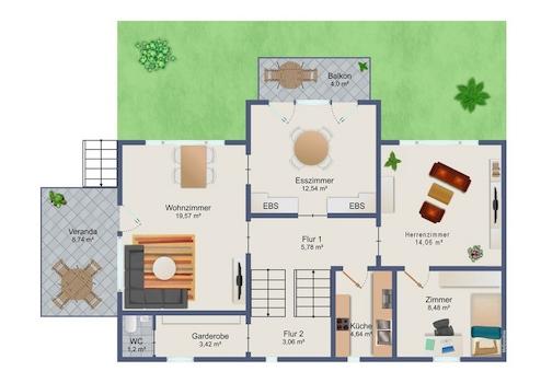 Das Haus selbst verfügt über eine gelungene Raumaufteilung mit schönen Freiplätzen (Veranda und Balkone) und strahlt eine spürbar natürliche Gemütlichkeit aus, die man selten findet. Unter Anderem wird dies durch den ungestörten Freiblick aus fast allen Zimmern des Hauses unterstrichen. Die Räume im Dachgeschoss weisen kaum schrägen auf und sind damit ausgezeichnet einzurichten.