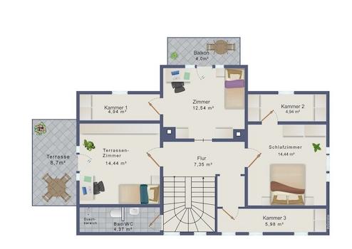 - Geräumige, begehbare Kammern neben den Zimmern in Dachgeschoss