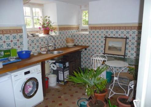 - Großer Hauswirtschaftsraum mit gut erhaltenen Decor-Fliesen und altem gut erhaltenen Steinzeugboden (ehemalige Küche)