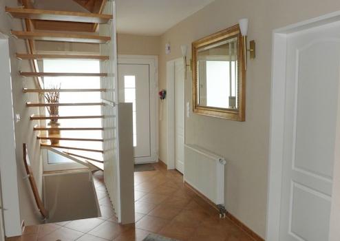Der Umbau beinhaltet eine zweite Eingangstür, eine neue Treppe in das vorhandene Treppenhaus einbauen, ca.5m Leichtbauwände einziehen, Einbau einer Küche sowie die dazugehörigen Wasserleitungen und die Trennung der Versorgung (Elektrik und Wasser).