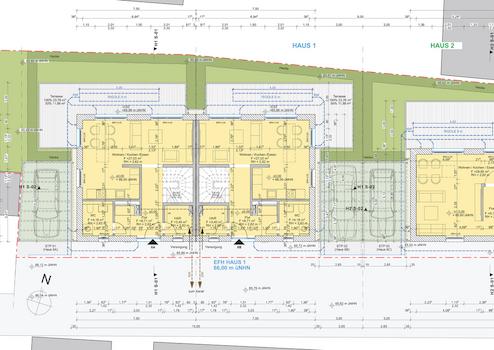 Hier das Haus Typ 1 I Hausnummer 6 A, linke DHH I 128 m² Wfl. I 132 m² GrSt.