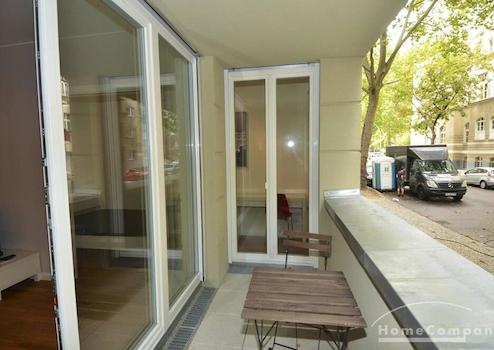 Neuwertige, luxuriöse Zwei-Zimmer-Wohnung mit großem Balkon, zentral gelegen am Barbarossaplatz in Berlin Schöneberg. Die Wohnung wurde frisch renoviert und neu eingerichtet. Sie bietet eine hochwertige und vollständige Ausstattung, Holzparkett, ein edles Badezimmer mit großer Dusche, eine moderne weiße, offene Einbauküche mit Geschirrspüler. Es gibt ein Doppelbett im Schlafzimmer und ein Schlafsofa im Wohnzimmer.
