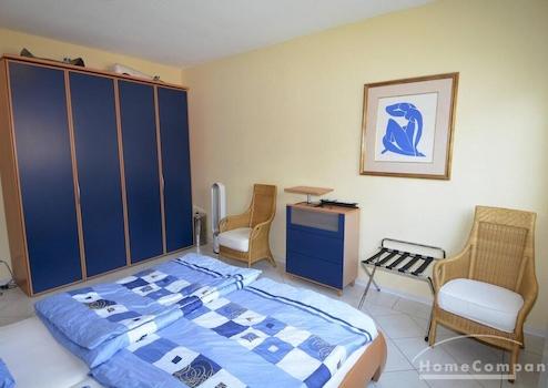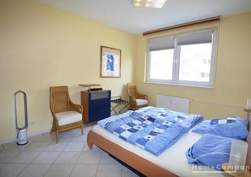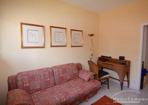 Ruhige, möblierte Wohnung in Berlin-Schöneberg, Nähe Nollendorfplatz. Der nette und beliebte Winterfeldplatz und die Akazienstraße befinden sich direkt um die Ecke. Die Wohnung ist komplett ausgestattet und bietet Sitz- und Schlafgruppen in den Wohnbereichen, ein großzügiges Esszimmer, neues LG Kabel-TV, Telefon, Internet-Anschluss und eine komplett eingerichtete Küche mit kompletter Ausstattung (Geschirr, Besteck, Mikrowelle, Toaster, usw.) und einen neuen Kaffevollautomaten (De Longhi- Prima Donna)). Dyson Ventilatoren sind ebenso vorhanden. Das Bad ist hell und hat eine Badewanne. Bettwäsche, Hand- und Badetücher sind vorhanden, ebenso eine Waschmaschine, Trockner und Bügeleisen/-brett. 3. Stock, Aufzug vorhanden. Abschließbarer PKW-Parkplatz im Innenhof.