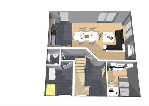 Innenputz in Q2 Ausführung, gegen Aufpreis auch streichfertig (Q3), OG Decke bzw. Kehlbalkenlage mit 20 cm Mineralwolle 0,035 gedämmt und mit Gipskarton verschalt. Innentreppe Stahlzahlentreppe mit Buche Vollholzstufen, Treppengeländer aus Stahl. Gegen Aufpreis auch aus Edelstahl. Auf Wunsch und gegen Aufpreis auch Vollholztreppe möglich.