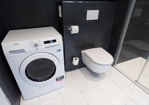 Ihr Badezimmer verfügt über eine Dusche, Föhn und Kosmetikspiegel. Zusätzlich bietet Ihr Apartment ein separates WC mit Waschmaschine und Trockner.