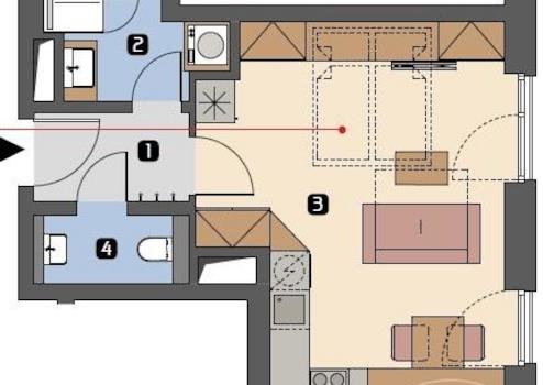 • Das 1-Zimmer Apartment hat eine Gesamtfläche von 34 qm und ist mit allem ausgestattet, was Sie zum Leben benötigen.