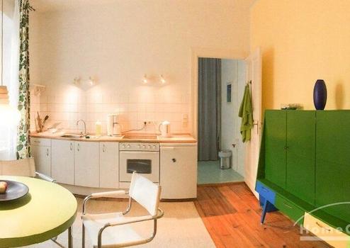 Möblierte, helle Ein-Zimmer-Wohnung in Berlin-Kreuzberg (61) mit Komfortmöblierung, gefliestem Wannenbad, Zentralheizung, Kabel-TV, Spülmaschine.