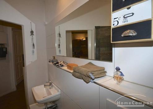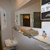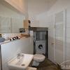 Auch das Badezimmer besticht durch seine lässige wurde Steinoptik.