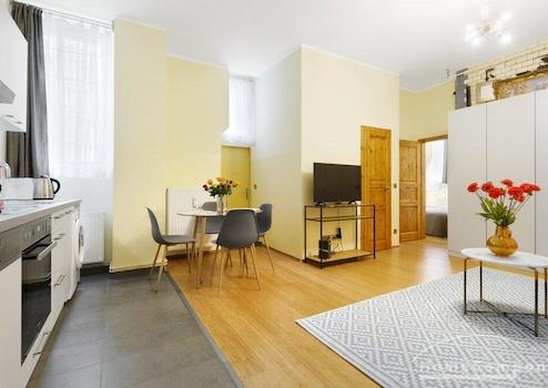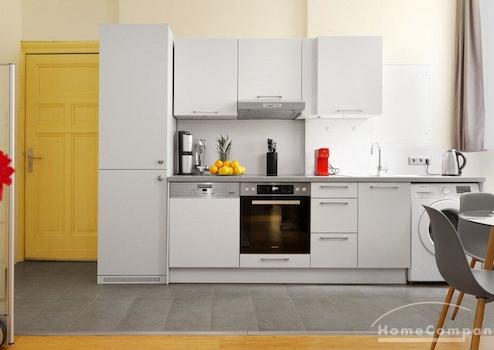 Schön eingerichtete 1,5-Zimmer-Wohnung in zentraler Lage in Wilmersdorf. Bambusparkett in der ganzen Wohnung, moderne Einbauküche mit Geschirrspüler. Schlafsofa und Fernseher im Wohnzimmer. Separates Schlafzimmer mit großen Kleiderschrank. Gefliestes Badezimmer mit Duschkabine.