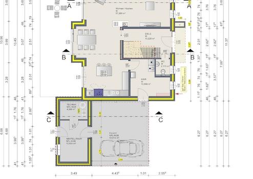 Provisionsfrei für den Käufer: Dieses top ausgestattete Neubau – Einfamilienhaus verfügt über diverse ansprechende Extras und Feinheiten. 95% der Fensterelemente wurden bodentief angeordnet und gewährleisten somit einen perfekten Lichteinfall in allen Räumen. Im Dielen- bzw. Eingangsbereich befindet sich die schwungvolle Betonkerntreppenanlage (Fliesenbelag & Holzhandlauf). Von der Diele aus gelangt man in den modernen & großzügigen Küchen/Wohn/Esszimmerbereich. Dieser ist mit bodentiefen Fensterelementen versehen durch welche man die großzügige Gartenterrasse betritt. Durch die intelligent angeordneten Fensterflächen geht keine Stellplatzmöglichkeit verloren. Im Dachgeschoss befinden sich drei Schlafzimmer und eine Ankleide sowie ein exklusives komf. Badezimmer. Dieses exklusive komf. Einfamilienhaus wird komplett schlüsselfertig inkl. Maler- & Gartenarbeiten erstellt. Auf eine hochwertige und einwandfreie Bauqualität wird geachtet.