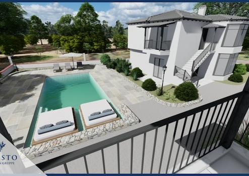 Die neu ausgebaute Wohnanlage, bestehend aus drei freistehenden Häusern, wartet auf ihre neuen Besitzer zum Erstbezug und lässt keine Wünsche offen.