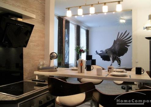 Exklusives 1-Zimmer-Studio-Apartment am Weinbergpark in Berlin Mitte, sehr schöne Lage in einer Seitenstraße an der Grenze zu Prenzlauer Berg und an der Kastanienallee. Neues Bad mit großer Wanne, neue offene Einbauküche mit Geschirrspüler. Sehr helles, modernes Ambiente auf etwa 52 Quadratmetern. Voll möbliert und ausgestattet, Internet vorhanden.