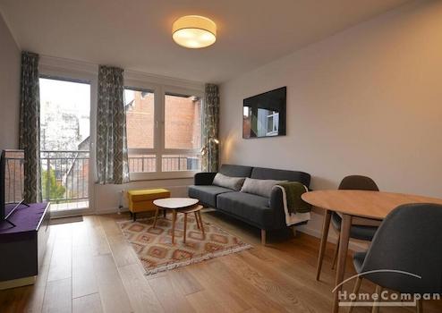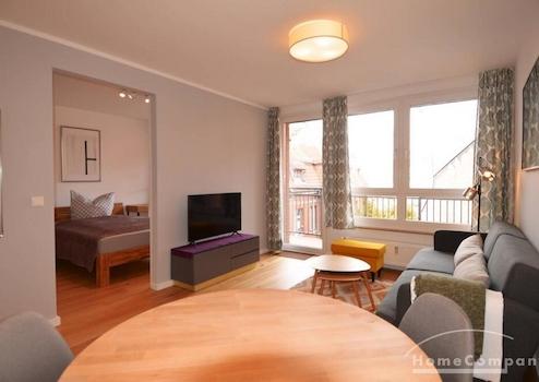 Ruhige, helle, modern möblierte 2-Zimmer-Wohnung mit geräumigem Balkon in Berlin Prenzlauer Berg. Die Wohnung liegt im Seitengebäude, nach Westen. Sie ist komplett ausgestattet. Zahlreiche Einkaufsmöglichkeiten für täglichen Bedarf befinden sich direkt vor der Tür. Unmittelbare Anbindung an S-Bahn und Tram - 10 Min zum Alexanderplatz. Die Wohnung ist u.a. ausgestattet mit Doppelbett, EBK, Fernseher, Mikrowelle, Video/DVD, Waschmaschine, Telefon, Radio und Internet (DSL 6000 Flat im Mietpreis bereits enthalten). Wohnzimmer mit offener Küche. Modern gefliestes Badezimmer mit geräumiger Duschkabine.