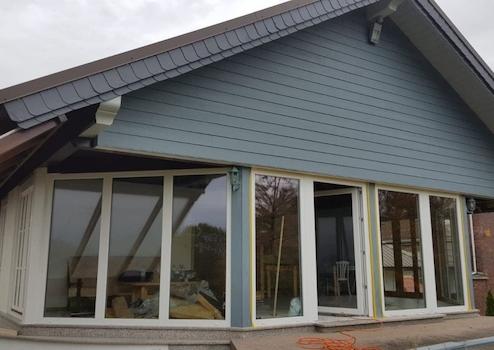Als Enstpannungsoase lässt sich der Wohn-Wintergarten bezeichnen, durch deren helle Glasfront, ein Panoramablick über das hessische Land garantiert wird.