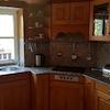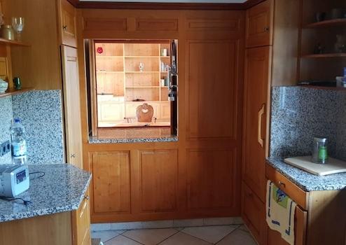 Die schicke Küche, mit Marmorplatten und ebenso gekonnt verarbeitetem Kirschholz, wird jede Hausfrau zu Luftsprüngen veranlassen....