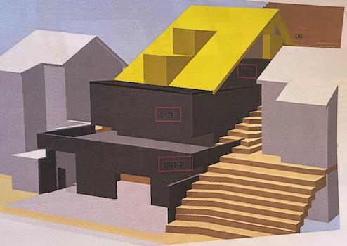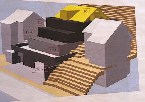 Projektstudie mit möglicher Gesamtfläche 1.248qm und mögliche Netto Nutzfläche von 860qm