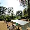 • separater Wohnungszugang mit eigenem Sitzplatz am Biedermeiergarten und kleinem Wasserspiel