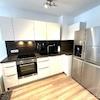 + helle, offene Wohnküche mit Geschirrspüler und amerikanischem Kühlschrank