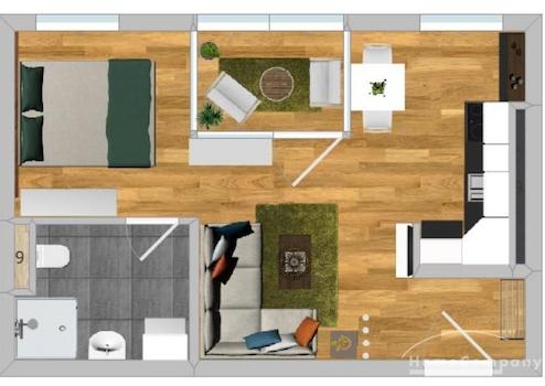Auf 31 Quadratmetern im Urban Jungle Design mit saftigen Grüntönen haben wir alles untergebracht, was man braucht: