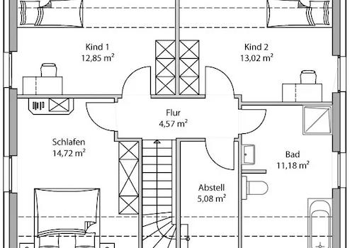 In diesem Haus genießen Sie einen Komfort, den Ihnen für gewöhnlich nur ein größeres Haus bieten kann. Viel Platz und genügend Stauraum für die Familie. Von der Haustür bis unter den Dachfirst ist dies ein Haus für die junge Familie. Die Gestaltung des Erdgeschosses bietet Ihnen die Möglichkeit eines gemeinschaftlichen Zusammenlebens. Platz für einen großen Esstisch und das Familiensofa sorgen dafür, dass Sie hier viele Aktivitäten mit der Familie gestalten können. Auch an Tagen die nicht zum rausgehen einladen. Die Küche ist groß genug um einen Frühstückstisch aufzustellen oder an Weihnachten als Backstube zu dienen. Kinder freuen sich über die 2 identischen Zimmer im Obergeschoss, denn so kann es keinen Streit geben. Auch das Schlafzimmer verfügt über genügend Stellfläche für ein Bett und Schränke. Und das Beste: Sie können daran auch etwas ändern. Gerne Planen wir mit Ihnen alle Ihre Vorstellungen und Wünsche in ein individuelles Bauvorhaben ein. Ob Ihr Haus größer oder kleiner werden soll, eine Dusche im Gäste-WC braucht, wir helfen Ihnen dabei Ihren Traum vom perfekten Eigenheim zu realisieren. Damit Ihr Haus genau so individuell wird wie Sie, der Bauherr! Ein weiterer Vorteil des Hauses ist sein Preis/Leistungsverhältnis, welches gerade jungen Familien genügend Spielraum bietet in Kombination mit der modernen Bauart die schon ab dem Einzug beim Sparen von Energie hilft. Außerdem verfügen unsere Häuser über Vaillant Technik der neuesten Generation . !!!