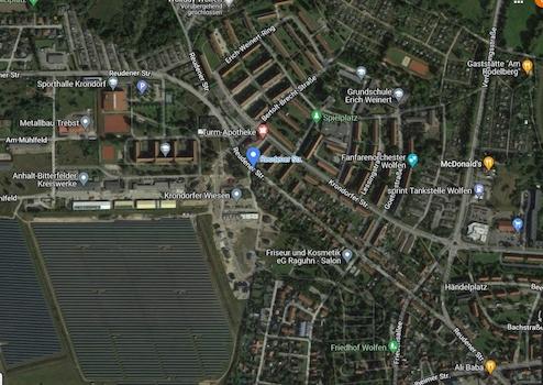 Auch wenn sich das Baugrundstück in einer sehr ruhigen Lage von Wolfen befindet, ist das Stadtzentrum in nur wenigen Minuten zu erreichen.