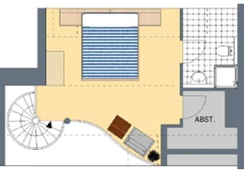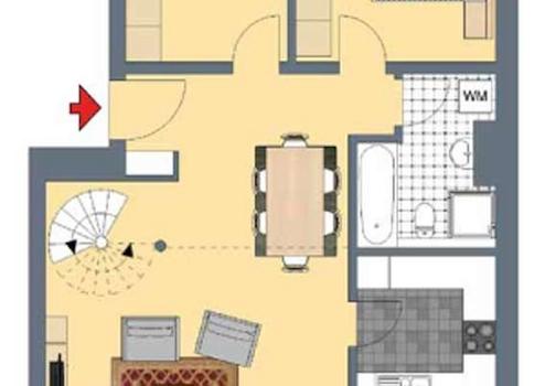 Im unteren Bereich der Wohnung befinden sich drei einladende Wohnräume, eine Küche sowie ein Badezimmer mit Dusche und Badewanne. Die obere Etage beeindruckt mit einer offenen Galerie, einem zusätzlichen Bad mit Dusche sowie einer praktischen Abstellkammer.