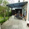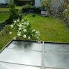 Die Garage zählt zum Anbau aus den 1960er-Jahren und ist gegenwärtig über eine stark geneigte Auffahrt passierbar. Oberhalb der Auffahrt kann ein weiteres Automobil geparkt werden. Die Garage ist nicht gänzlich trocken. Bei Starkregen können dorthin Wassermengen eindringen. Diese Problematik besteht laut Aussage des Verkäufers schon seit vielen Jahren, hat aber die sonstigen Gebäudeteile anscheinend nicht wesentlich beeinträchtigt.