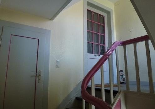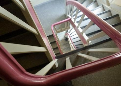 Im baujahrtypischen Treppenhaus existieren außerdem zwei separate WC-Anlagen auf der Erd- und Obergeschossebene.