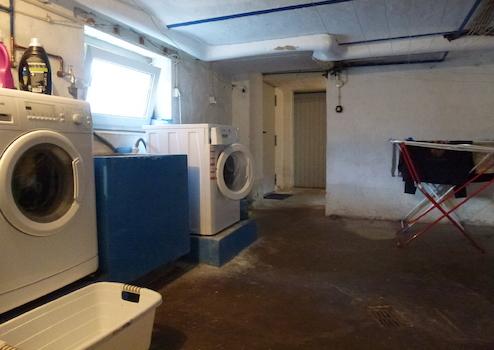 Das Haus ist voll unterkellert. Der Keller hat insgesamt vier Kellerräume und eine Verstaunische unter dem Treppenlauf. Ein Wasch-/Trockenbereich für die Hausgemeinschaft, die Heizungsanlage, die Haustechnik und -anschlüsse sind hier unten ebenso untergebracht. Hinzu kommt, dass Sie vom Keller aus sowohl einen Zugang zum Garten als auch zur Garage haben.