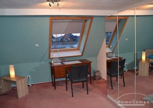 1 möbliertes Zimmer in 2er Wohnetage in einer großen 3 Zi.Whg. (ca. 90 qm). 1. OG im 2 Familienhaus, Küche und Esszimmer, Bad + Wohnzimmer zur gemeinschaftl. Nutzung. W-Lan vorhanden. Nichtraucherwohnung. Miete 385,- €.