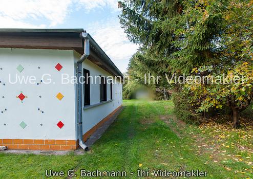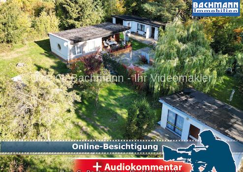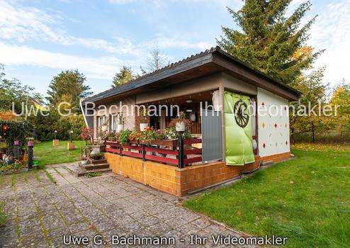 Das massive Wochenendhaus mit Asbestdach und großer befestigter Terrasse, bietet innen eine Nutzfläche von ca. 30 m² auf. Diese sind aufgeteilt in Schlaf- und Wohnraum, eine Stehküche sowie eine Toilette mit Waschgelegenheit. Dieses Gebäude ist an die Kanalisation angeschlossen.