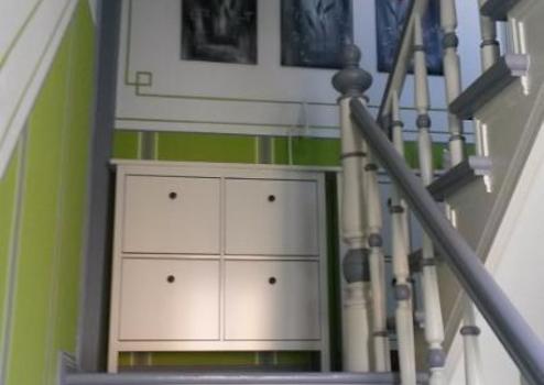 Ein eigenständiger Treppenaufgang führt in die oberen Geschosse.