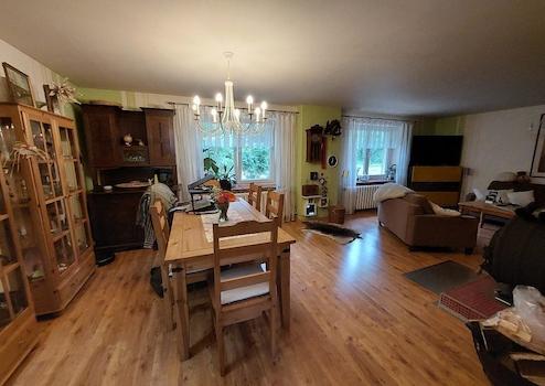 Der Innenbereich ist individuell und exklusiv gestaltet. Die Wohnfläche von ca. 240 m² erstreckt sich über drei Etagen. Im Erdgeschoß befinden sich die Küche und das Wohnzimmer. Das Wohnzimmer ist ein heller großzügig geschnittener Raum, in dem man sich rundum wohlfühlt. Ein wunderschöner Bullerjahn Kamin gibt diesen Raum ein ganz besonderes Flair. Mit diesem Kamin haben Sie die Möglichkeit, das gesamte Erdgeschoss zu beheizen.