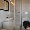 Die Küchenzeile befindet sich im Wohnraum, die Küche hat keine Geschirrspülmaschine.
