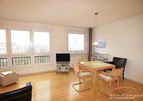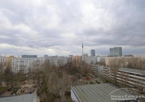 Helle, modern möblierte, vollständig sanierte Drei-Zimmer-Wohnung in Berlin Friedrichshain, zentral gelegen in der Nähe vom Bahnhof Alexanderplatz, mit wundervollem Blick zum Fernsehturm. Die Wohnung bietet viel Stauraum, ein modernes, helles Wohnzimmer mit Panoramablick und eine offene Einbauküche. Das Bad hat eine Dusche. Das Schlafzimmer ist mit Doppelbett und Einbauschrank ausgestattet