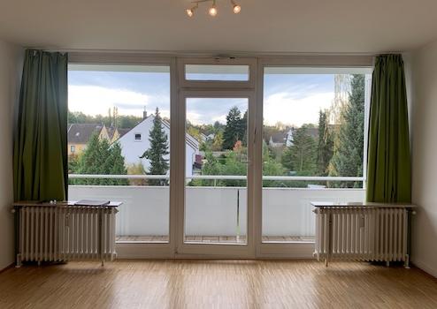 Wohn- Schlafzimmer mit Küchenecke, Bad mit Wanne, schöner Balkon.
