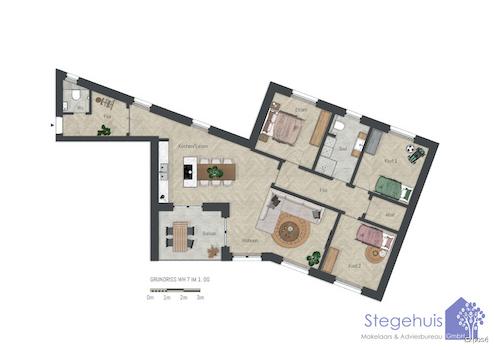 Die Raume der Wohnung Nr. 7 im 1e Obergeschoss (ca. 123 m²) sind wie folgt aufgeteilt: