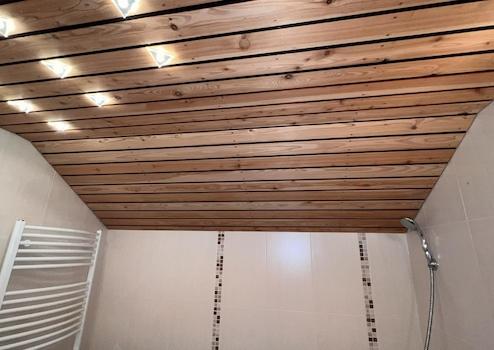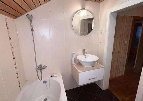Obergeschoss, Duschbad mit WC und HWB in den Zimmern, in der Wohnung