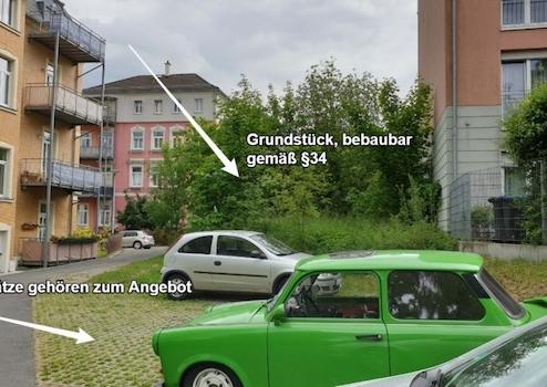 Bei diesem Angebot geht es um ein unbebautes Grundstück in attraktiver Wohnlage von Plauen. Das unregelmäßig geschnittene Grundstück lässt sich mit einem 3-geschossigen Haus bebauen und bietet im hinteren Bereich Parkplätze, die an die derzeitigen Nutzer vermietet werden können, sofern kein Eigenbedarf besteht. Das derzeit straßenseitig mit Sträuchern, Bäumen und Wiese wild bewachsene Grundstück liegt im Innenbereich gemäß § 34 BauGB und ist im Flächennutzungsplan als allgemeines Wohngebiet ausgewiesen.