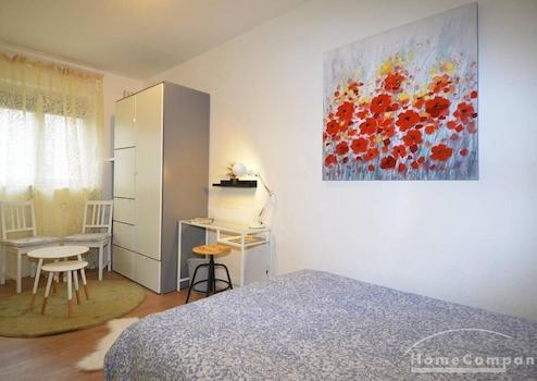 Das Wohnzimmer ist modern eingerichtet mit Sofa und Esstisch und bietet mit dem großen Schrank genügend Stauraum. Das Schlafzimmer bietet ein Doppelbett (140cm) und genügend Stauraum in den geräumigen Kleiderschränken. Das geflieste Tageslichtbad mit Fenster und Dusche ist nur über das Schlafzimmer begehbar. Komplett möbliert mit neuer Einbauküche, Waschmaschine und Internet. Bügeleisen und Bügelbrett vorhanden. Das Objekt befindet sich in der ersten Etage ohne Fahrstuhl. Gute Nahverkehrsmittel. Der U-Bahnhof ist unweit des Objekts. Wohnung liegt direkt an der Hauptstraße! Rundfunkgebühren sind in der Miete nicht enthalten.