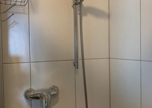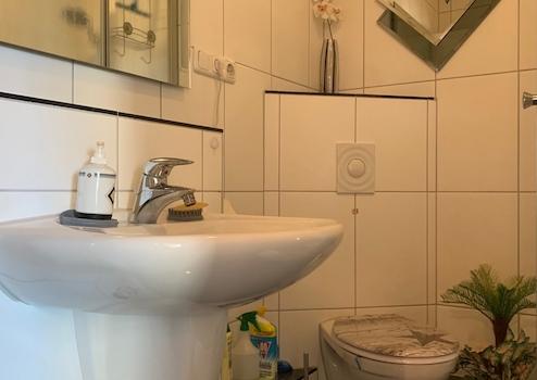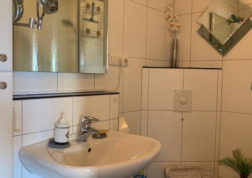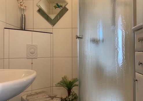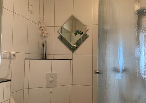 Von der Diele aus links befindet sich das renovierte Badezimmer mit Dusche und WC.