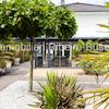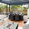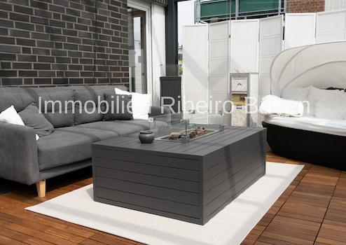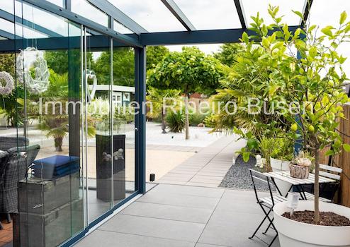 Auch der Garten des insgesamt 659 m² umfassenden Grundstücks setzt die Geradlinigkeit der Architektur mit Zen-Elementen ansprechend um. In der luftig und leichten Alu-Glaskonstruktion des Sommergartens genießen Sie auch an kühlen Tagen die schöne Aussicht.