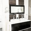 Das große Tageslichtbad im Obergeschoss verfügt neben zwei Waschtischen und einem WC über einen geräumigen und ebenerdig zugänglichen Duschbereich.